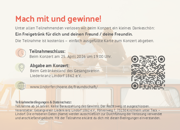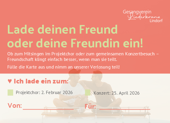 Lade eine Freundin oder einen Freund zum Mitsingen oder Konzertbesuch ein und nimm am Gewinnspiel teil.